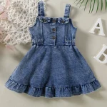 Model Number: Toddler Girl Ruffle Halter Denim Dresses